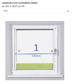 Exemple : Largeur pour 500mm, ne rien ajouter ou déduire aux mesures