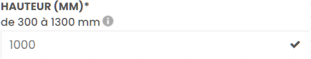 Exemple : Hauteur pour 1000mm, ne rien ajouter ou déduire aux mesures